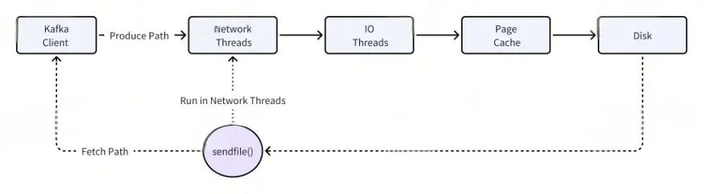 SendFile, instrumental for Kafka's zero-copy mechanism, operates within Kafka's network thread pool. Should SendFile require disk data copying (in a cold read scenario), it can potentially block this thread pool. Given that this thread pool serves as the entry point for Kafka requests, inclusive of write requests, any blockage by SendFile can substantially impair Kafka's write operations.