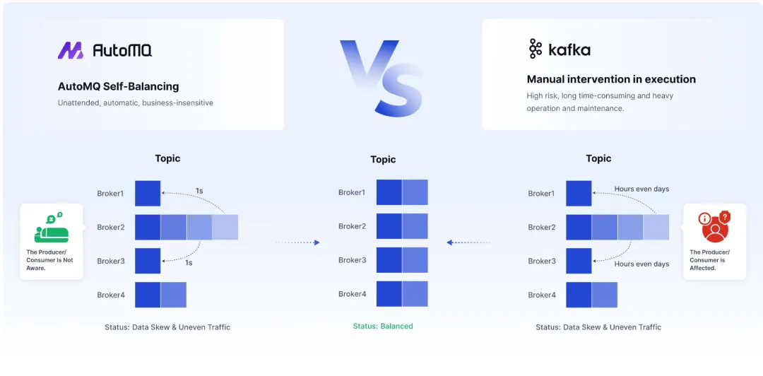 AutoMQ Automatic Traffic Rebalancing vs. Apache Kafka Manual Migration