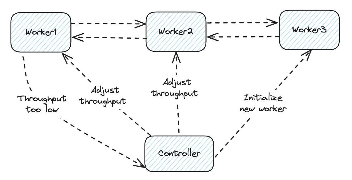 The architecture of the Controller and Worker is crafted as a distributed system: The Controller functions akin to a K8S Operator, dynamically adjusting the number and setup of Workers via a tuning loop to align with task demands; Workers are fully stateless systems that inform the Controller about various events to manage corresponding actions. This setup provides the architecture with remarkable flexibility, supporting the scalability demands of tasks. Moreover, the lightweight, adaptable Workers can dynamically scale and even operate on Spot instances[2], considerably lowering operational expenses and enabling the feasibility of ultra-large-scale elastic tasks