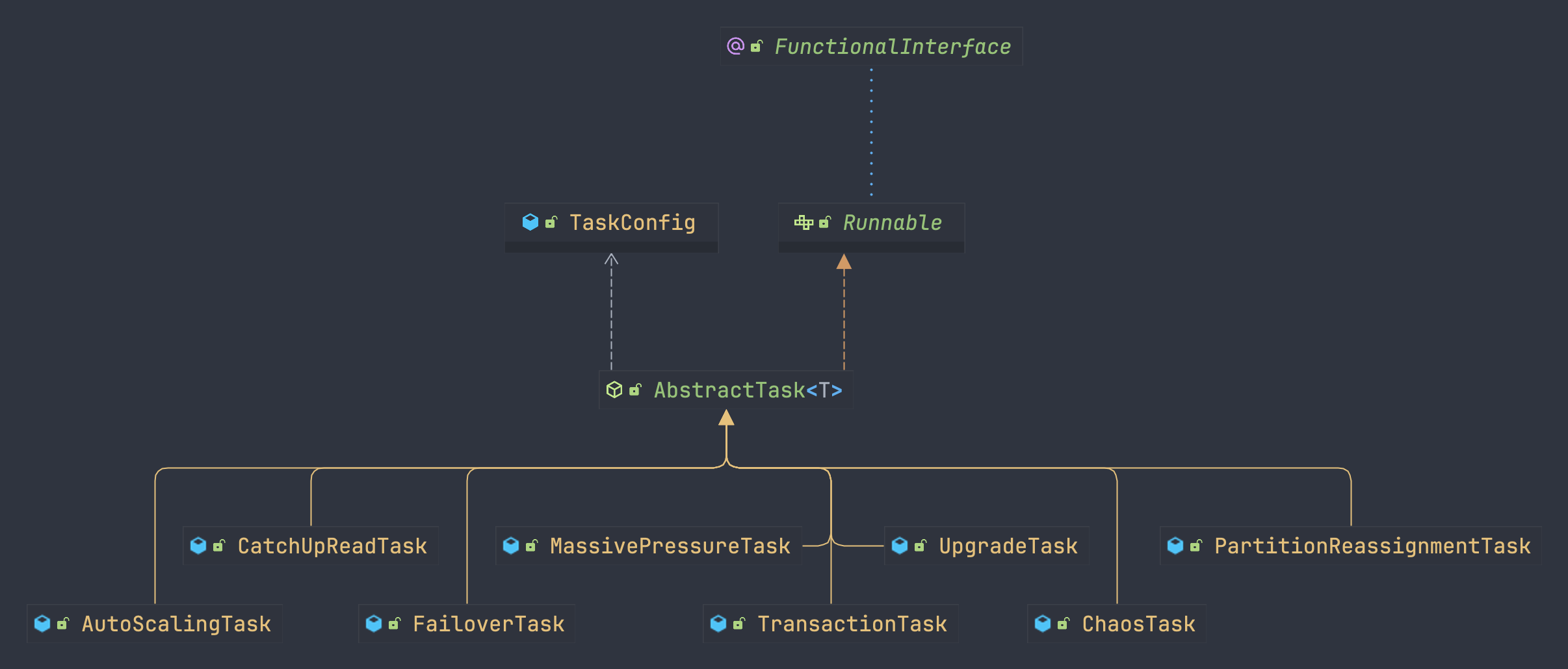 With a variety of implementations of AbstractTask, a wide range of testing scenarios is possible. Orchestrating different task stages and even distinct tasks is essential for the Controller to execute the aforementioned scenarios.