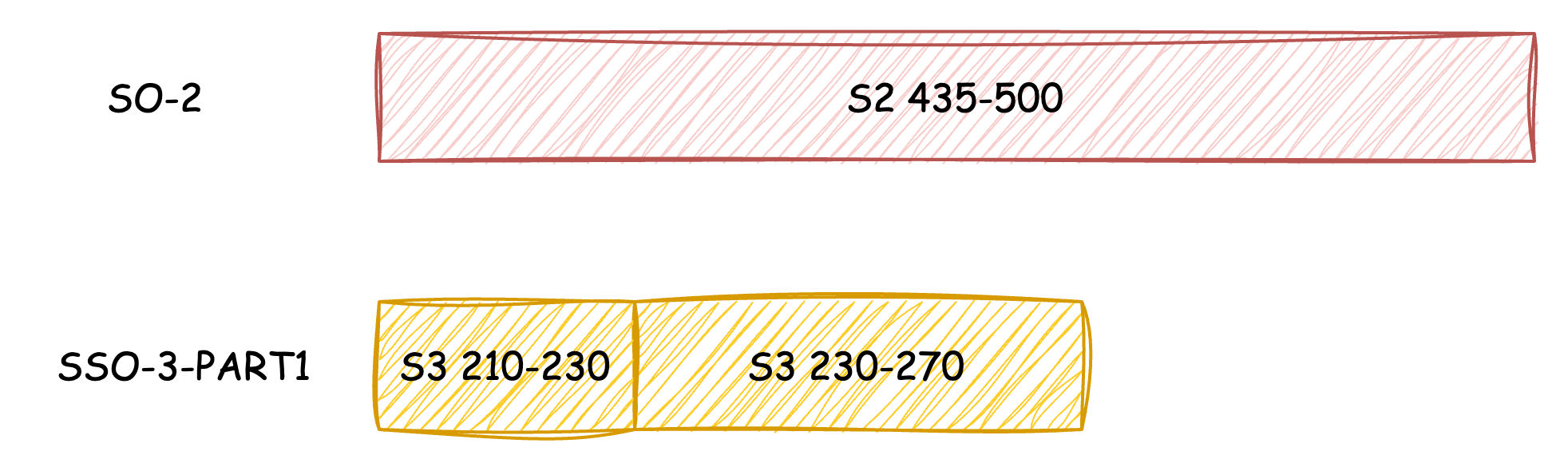 In the second iteration, the remaining data segments from S2 that were previously truncated (435-500) will be uploaded as a separate SO, and the remaining data segments from S2 will be uploaded as the second part of SSO-3.