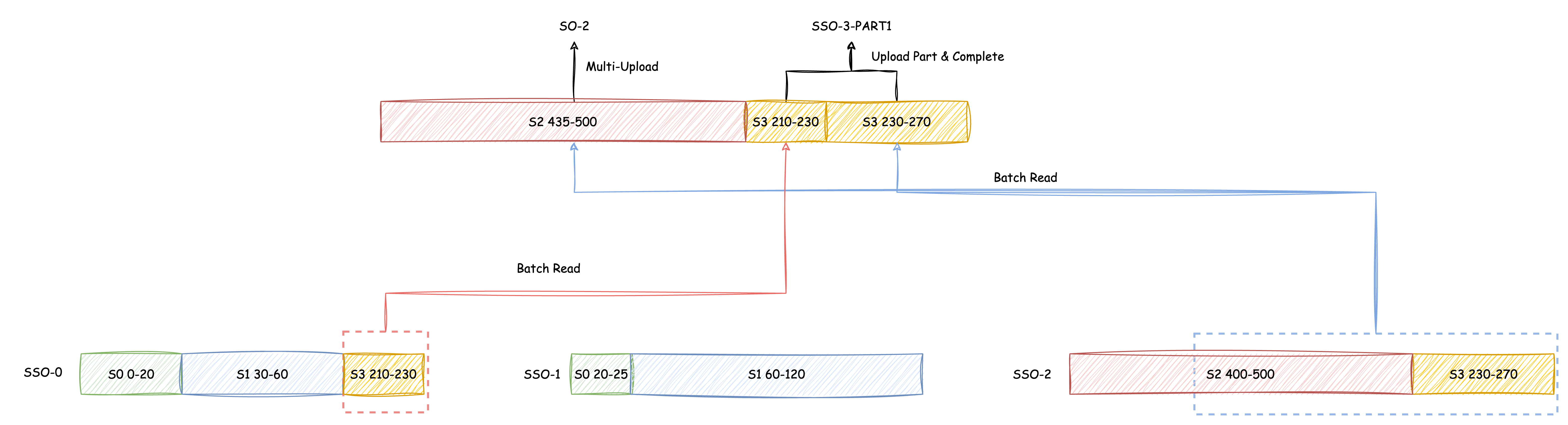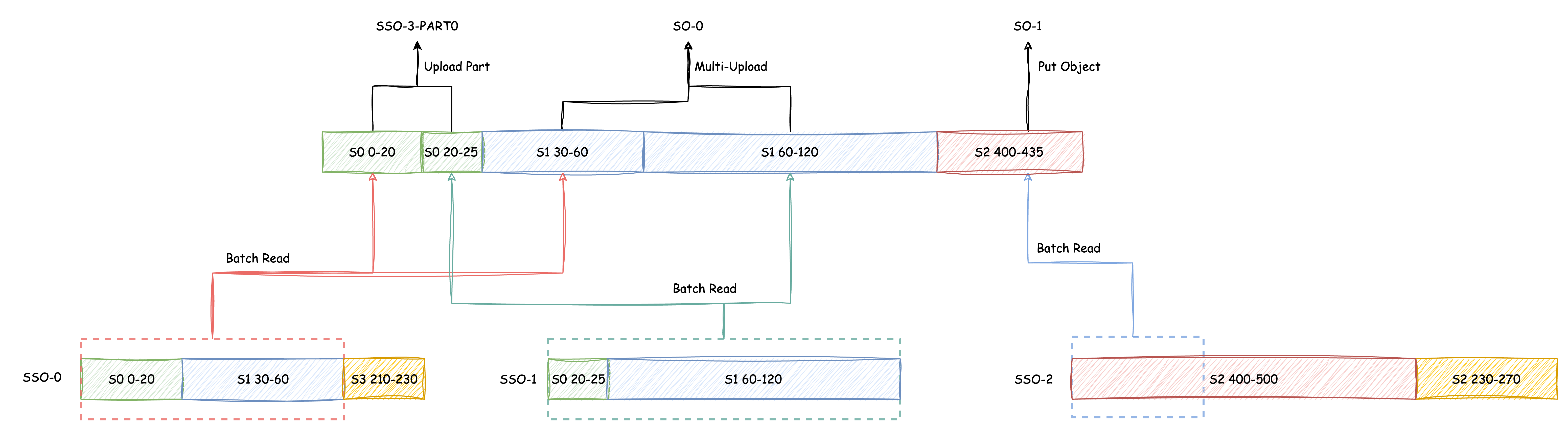 After reading S2 (400-435), it is uploaded through PutObject to complete SO-1's upload