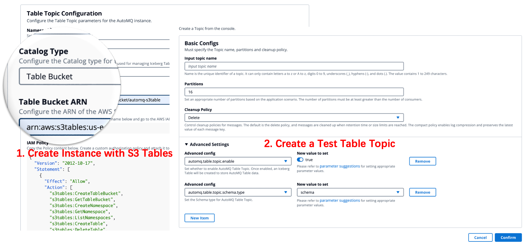 Step 2: Create AutoMQ Instance with Table Topic Enabled