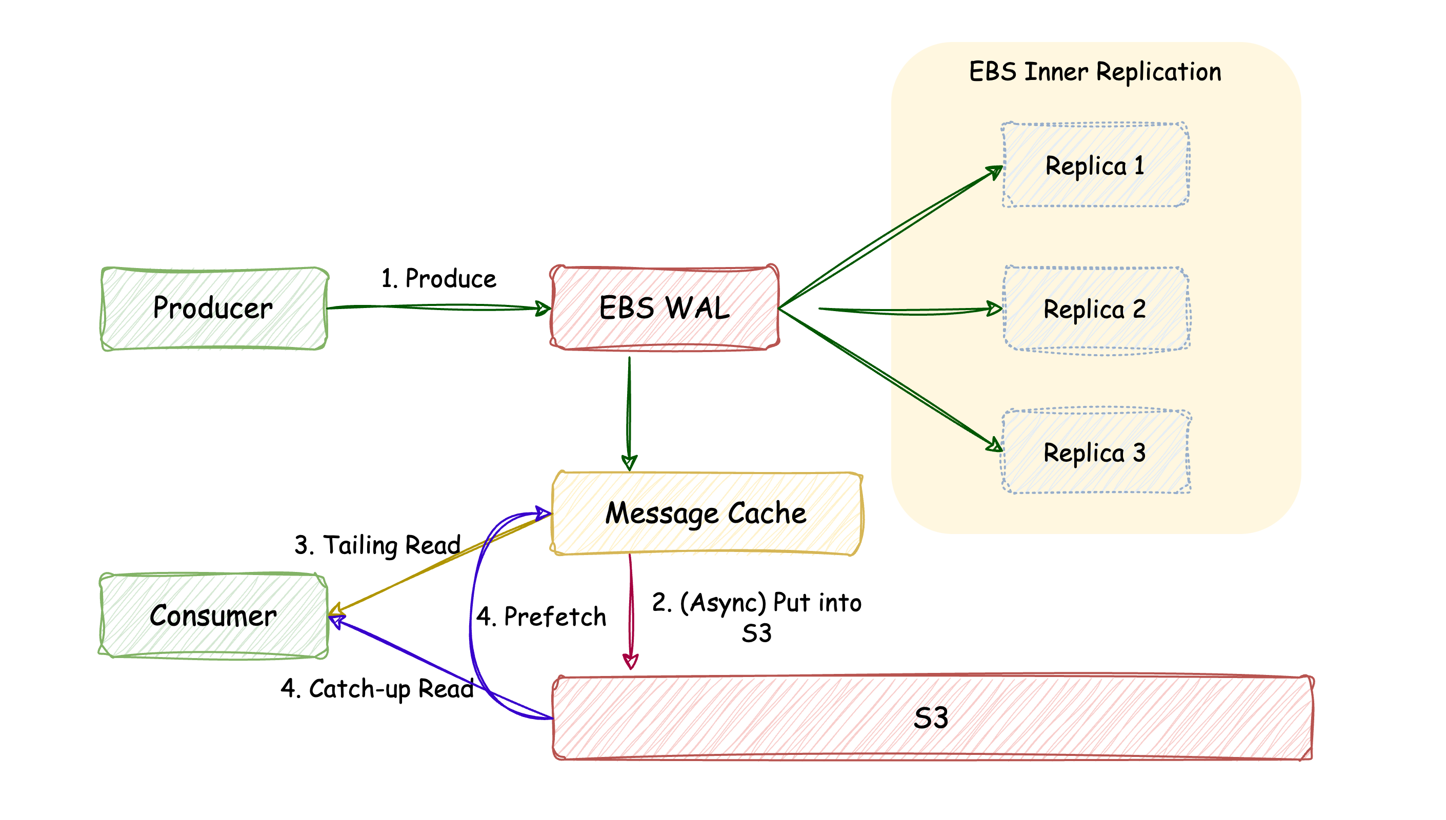 Message Sending Traffic: Producer -> AutoMQ -> S3
