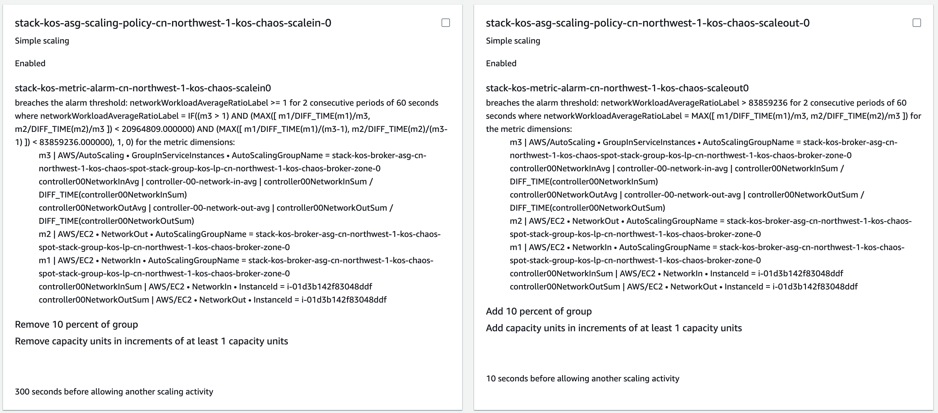 Simple scaling strategy for expansion is as follows, meaning: If the average network traffic of inbound or outbound per broker exceeds the set average bandwidth, then scale up by our set step (default is 10% of current capacity and at least one instance). It is essential to note that for computing instances provided by cloud providers, if the network bandwidth is assumed to be 100MB/s, it would imply 100MB/s each for both inbound and outbound.