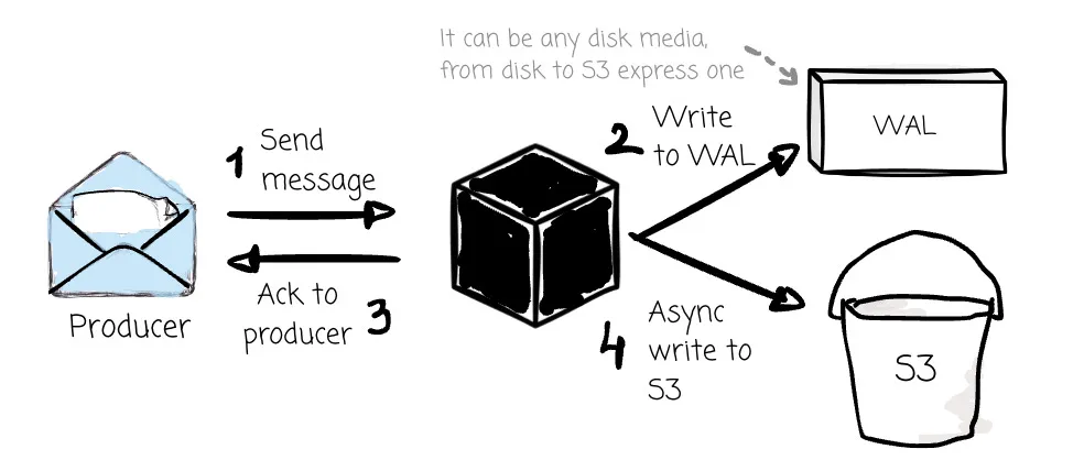 Some vendors choose to sacrifice low-latency performance. WarpStream or Bufstream believes this is a good trade-off for huge cost savings and ease of operation. These systems wait until the message persists in the object storage before sending the acknowledgment message to the producer.