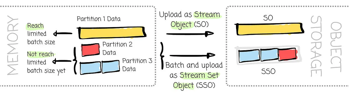 Data from other partitions’ streams will be combined to meet the batch size, and the broker will upload it as the SSO.