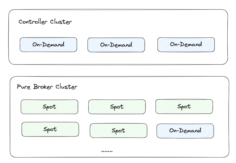 - Kraft nodes use on-demand instances : The core capabilities that AutoMQ relies on depend on KRaft. To ensure the reliability of metadata, the nodes that participate in Raft elections and ensure metadata consistency still use on-demand instances to ensure their stability.