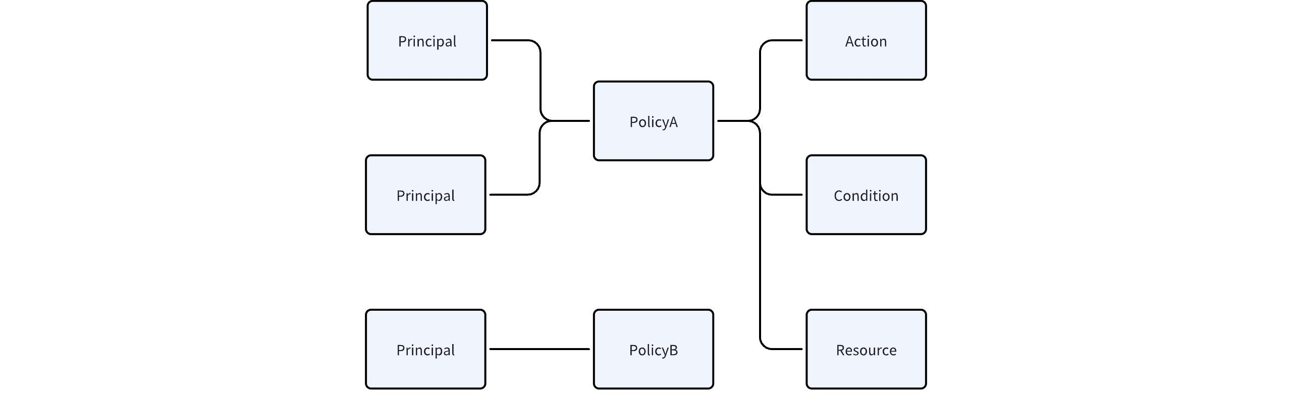 Policy: Represents an independent permission policy that can be directly bound to the authorized subject.