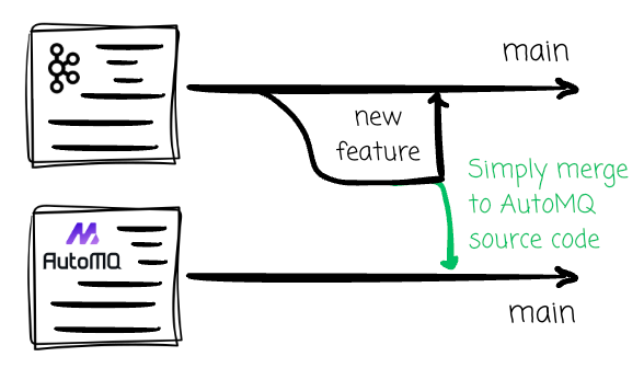 By doing this, AutoMQ can confidently offer 100% Kafka compatibility for its diskless offer; if Kafka introduces new features (such as queues), AutoMQ can seamlessly integrate them into its source code.