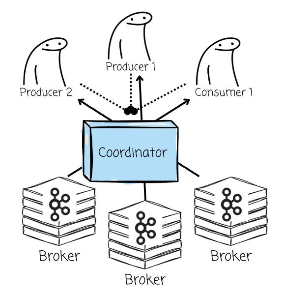 For the leaderless architecture to work, the deployment must have an extra component compared to the original Kafka solution. As every broker can serve read and write operations, the Coordinator must present to assign a broker for the read/write clients, manage metadata, and re-implement all of Kafka’s advanced features that the partition leader previously handled.
