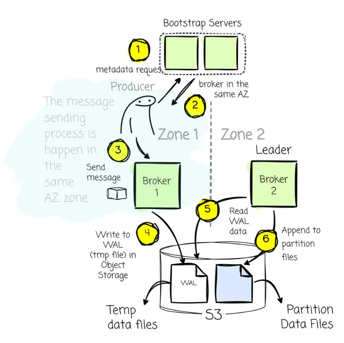 By doing this, AutoMQ can eliminate cross-AZ traffic fees without sacrificing Kafka compatibility (leaders still write the partition data).