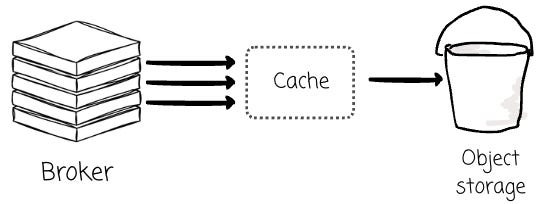 Speaking about cache, it is an essential mechanism in diskless architecture, as reading data from the object storage is not as performant as reading data from a local disk.