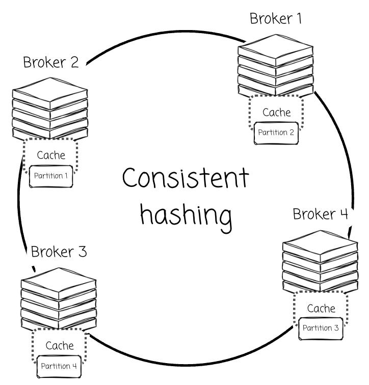 As I understand, vendors attempt to assign partitions to specific brokers. For example, Warpstream leverages consistent hashing to assign partitions to a broker. This broker is responsible for caching and serving all the data for the designated partitions.