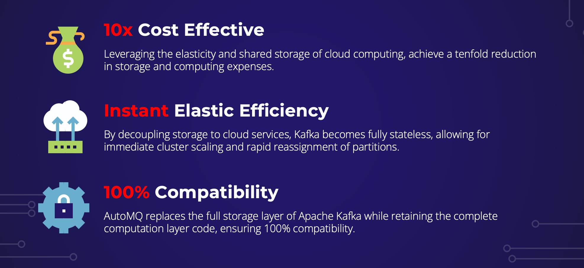 AutoMQ offers several compelling benefits, making it an excellent choice for modern data streaming and messaging needs: